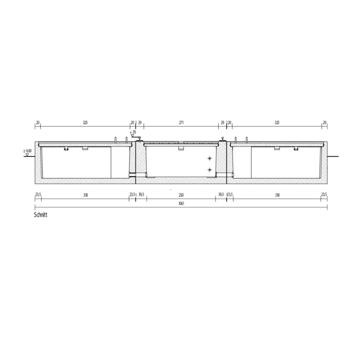 3-teiliger Fertigteil-Transformatorenstand mit 63 m³ Auffangvolumen.